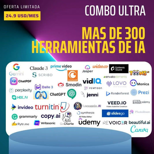 Descubre nuestros combos de herramientas de inteligencia artificial diseñados para emprendedores, creadores de contenido, marketers, estudiantes y profesionales que quieren ahorrar tiempo, automatizar tareas y alcanzar resultados increíbles.